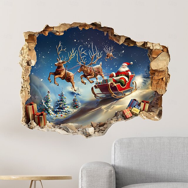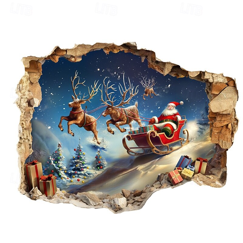 $7.49 - Christmas Sticker Wall Decals 3D Broken Wall Santa Claus Sleigh Reindeer Removable Vinyl Mural Holiday Party Living Room Entryway Wall Decoration Home Festival Atmosphere 2025. Shop for cheap Sticker online? Buy at lightinthebox.com on sale today!