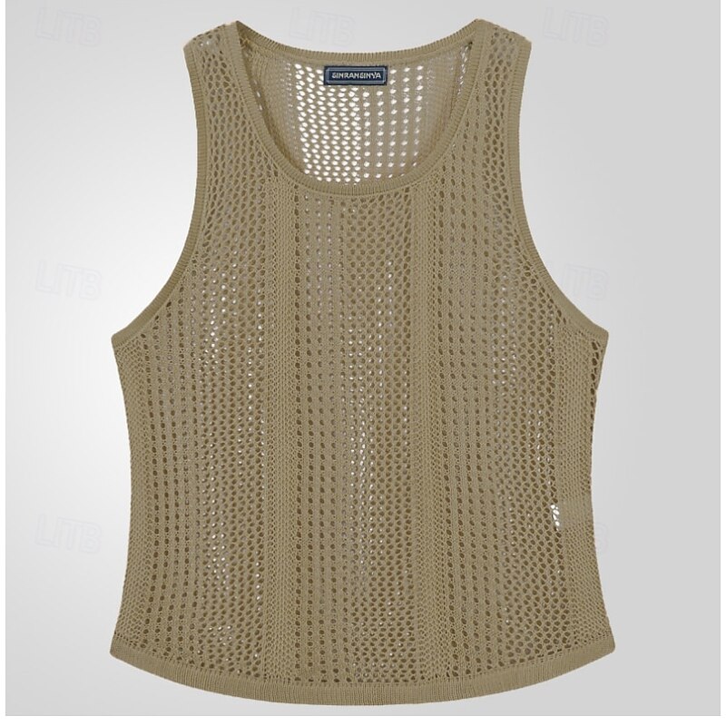 More information about Men's Tank Top Undershirt Sleeveless Shirt Sleeveless Crew Neck Summer Solid Color Fashion Designer Muscle Knitted Outdoor Vacation Black White Army Green Top Tee for Men