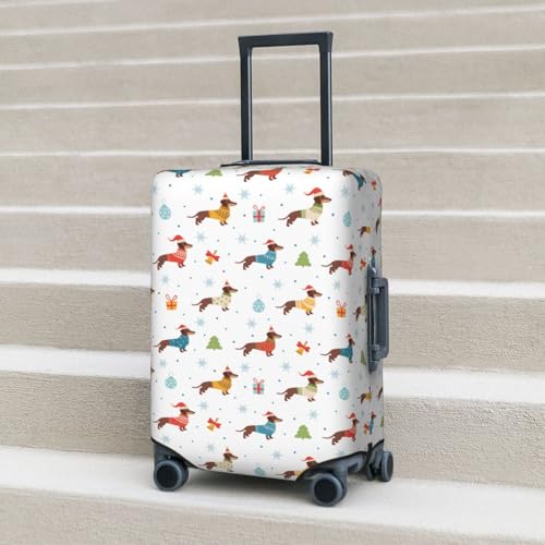 HOT ! Winter Snowflake Dachshund Print Luggage Cover For Suitcase,Washable Elastic Travel Suitcase Protector With Zipper Closure And Bottom Buckle – Fits 18-32" Luggage-Medium
