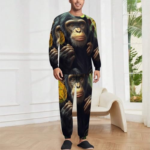 Monkey Gorilla Men’s Pajama Set Long Sleeve Top And Pants Loungewear Sleepwear Pjs Nightwear 1