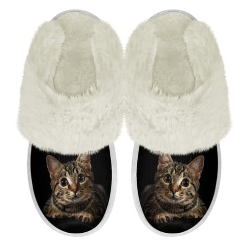 • IDEAL HOME SLIPPERS: These plush slippers include funny cat print, Step into the warmth and comfort of your bedroom in our bedroom slippers for cosy indoor nights. Designed to make your feet feel cosy and comfortable, these plush slippers are the ideal house shoes for any bedroom.