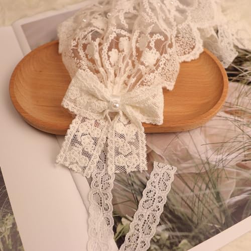 Baby Girls Lacy Bow Headband Soft Breathable Lace Hairband for Toddlers Infant Baptism Christening Beanie Cap 5