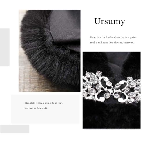 Ursumy Wedding Faux Fur Wrap Bridals Shawl Fur Stole Fur Scarf with Rhinestones Brooch for Bridal 5