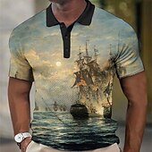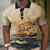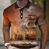 More information about Men's Nautical Waffle Polo Shirts Golf Shirt Short Sleeve Polo Shirts Collared Shirts Vintage Casual Vacation Wear Boat Wear Party Outfits Buttons 3D Print Yellow Blue Orange