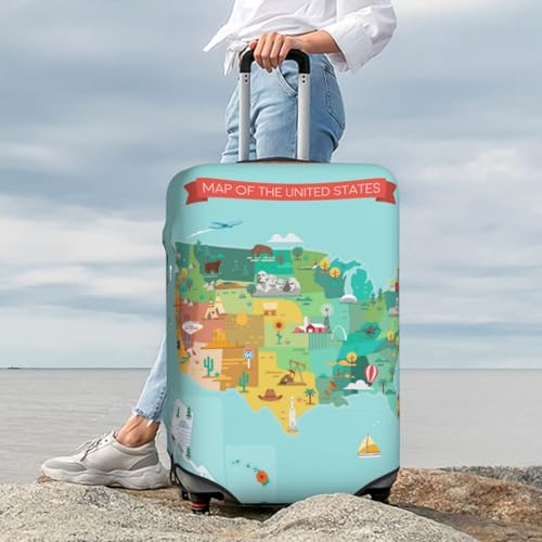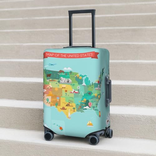 HOT ! Travel Luggage Cover Protector - Usa Tourist Map With Famous Landmarks Washable Suitcase Covers For 18-32 Inch Luggage