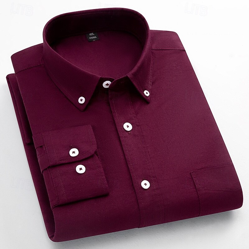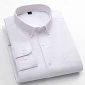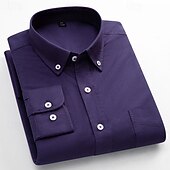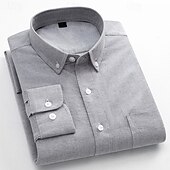Men's Striped Long-Sleeve Dress Shirts Button Down Breathable Casual Vintage Loose Cotton Shirts Stylish Solid Oxford Business Shirt for Men 15