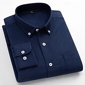 Men's Striped Long-Sleeve Dress Shirts Button Down Breathable Casual Vintage Loose Cotton Shirts Stylish Solid Oxford Business Shirt for Men 17