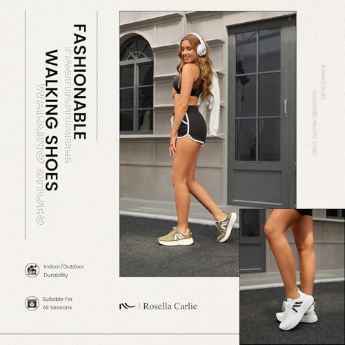 More information about Rosella Carlie White Sneakers for Women - Women's Fashion Sneakers with Honeycomb EVA Midsole - Lightweight Stylish Patchwork Casual Platform Lace Up Tennis Gym Workout Walking Runing Shoes