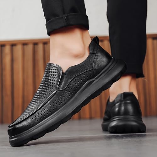 Men's Leather Platform Loafers Fashion Round Toe Breathable Hollow Casual Walking Shoes Comfortable Non-Slip Slip-on Driving Loafers 6