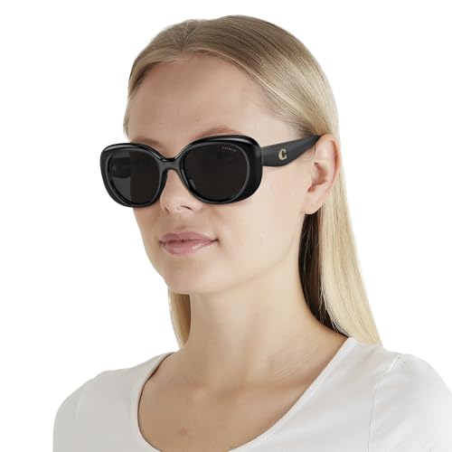 • FRAME FEATURES: Playful elements inspired by the Sculpted C Hardware on Coach's iconic Tabby bag; the HC8391U Sculpted C Hardware Universal Fit feature an oval, black frame and grey solid lenses