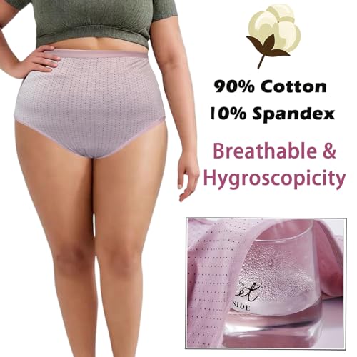 Women's Plus Size Cotton Underwear Panties High Waisted Briefs 7-Pack XL-6XL Point Print Ladies Panties 6