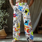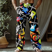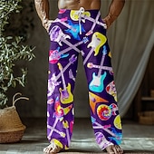 Men's Guitar Musical Instrument Trousers Baggy Pants Casual Pants Mid Waist Retro Vintage Outdoor Vacation Holiday Drawstring Side Pockets Elastic Waist Summer Spring 3D Print Black White Purple