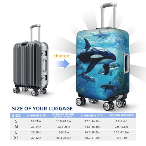 • Size: Ourkiller Whales Swim Along Print Luggage Cover 4 Sizes Available To Fit Almost Any Luggage. Size S: Fit 18-21 Inch Luggage; Size M: Fit 22-25 Inch Luggage; Size L: Fit 26-28 Inch Luggage; Size Xl: Fit 29-32 Inch Luggage .We Have Many Kinds Of Colors, You Can Choose The One You Like.