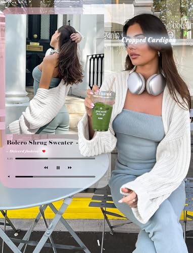 • OZICERD Cropped cardigan bolero shrug sweaters for women trendy: cute going out top, long sleeves arm cover with turn up cuffs, dropped shoulders, oversized casual loose fit, open front, soft chunky knit fall sweater