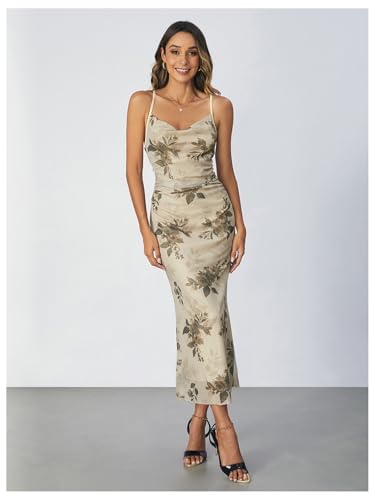 SOLY HUX Women's Floral Print Cami Dress Cowl Neck Spaghetti Strap Bodycon Party Long Dresses 5