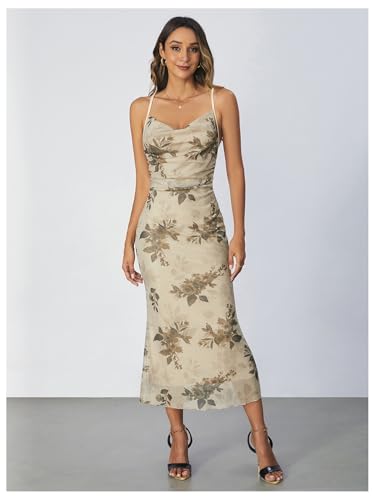 SOLY HUX Women's Floral Print Cami Dress Cowl Neck Spaghetti Strap Bodycon Party Long Dresses 1