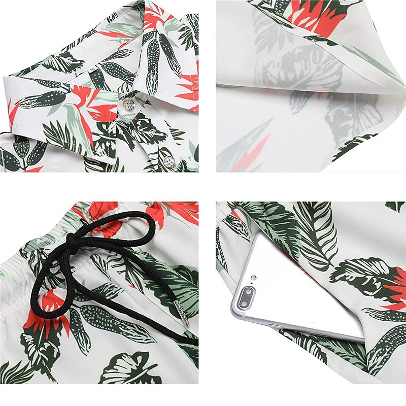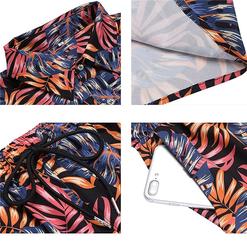 More information about Men's Floral Leaves Tropical Plants 2pcs Shirts Sets Summer Hawaiian Shirt Short Sleeve Short Pants Turndown Tropical Fashion Hawaiian Street Casual Hawaiian Print Summer Spring Black White Brown