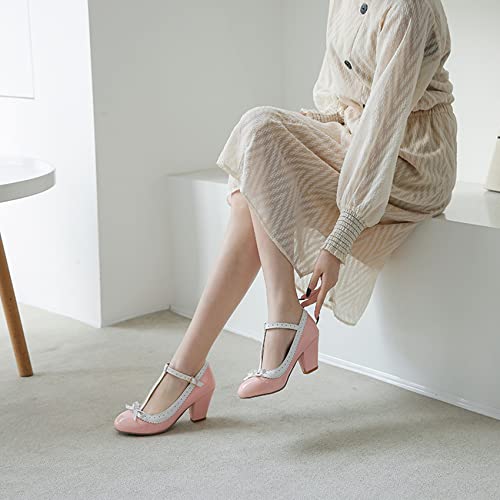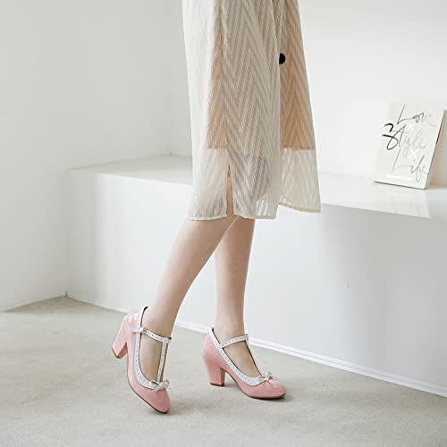 Bellirala Womens Rockabilly Shoes T-Strap Mary Jane Block High Heel Closed Toe Pumps 7