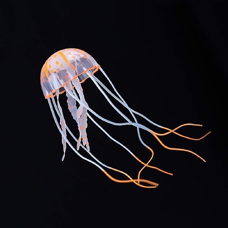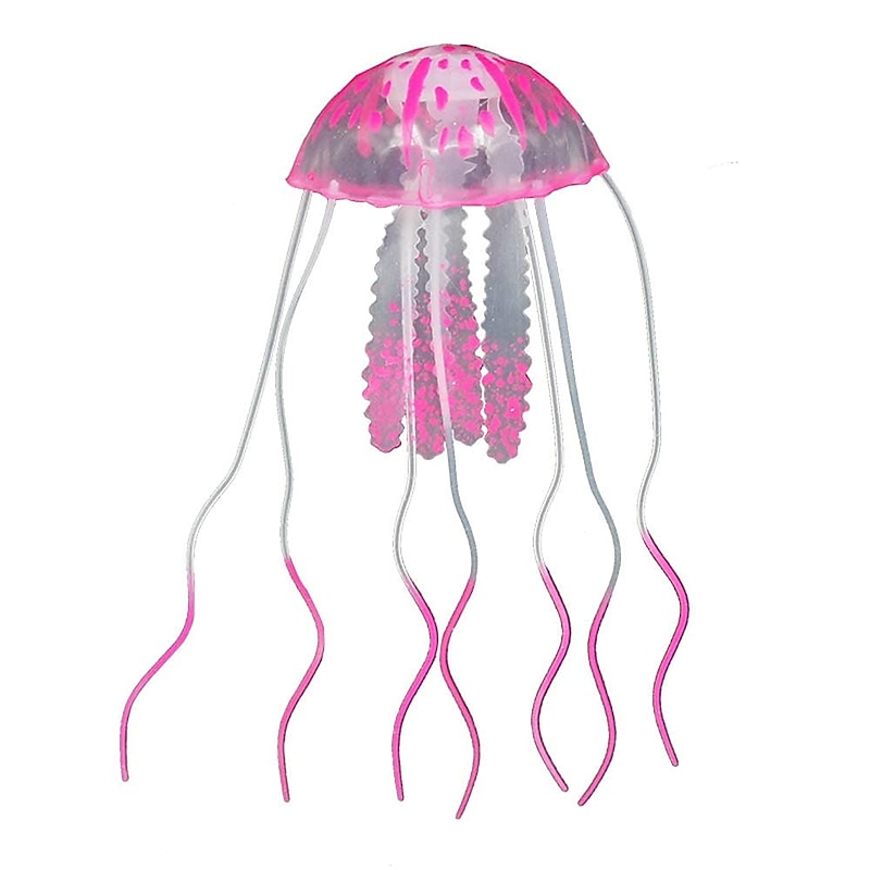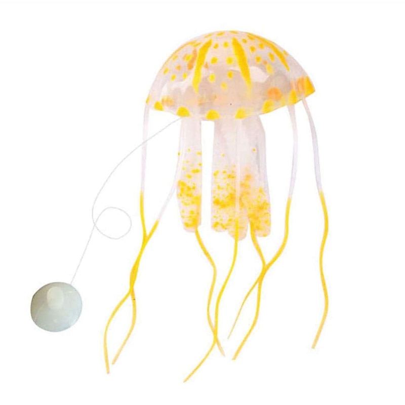 Highlights IDEAL DECORATION: Floating freely and graceful incredibly detailed imitation floating jellyfish. HARMLESS TO YOUR FISH: Made of Eco-friendly silicone material, nontoxic, odorless and durable. EASY TO MAKE IT ALIVE: Just fix suction cup, it attaches by thin invisible line. NOT "GLOWING IN THE DARK": The Glowing Effect will only happen under actinic lighting, blue or purple light is recommended.
