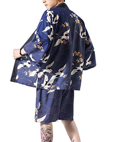 • Design: Japanese kimono style, fashionable print pattern, loose fit, thin fabric. Cardigan jacket with 3/4 sleeve, open front, no closure and pockets. Shorts with drawstring closure and 2 slant pockets.