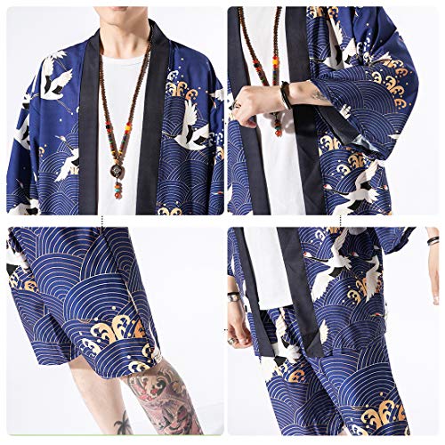 PRIJOUHE Japanese Kimono For Men Lightweight Open Front Kimono Bathrobe With Shorts 2 piece Summer Beach Outfits 3