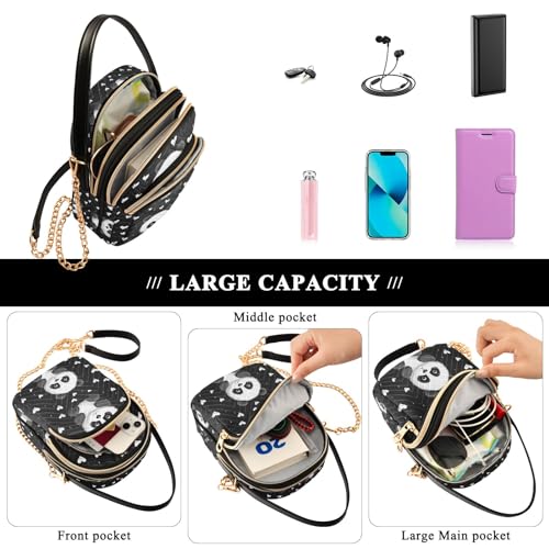 SUABO Crossbody Bag for Women, Black Panda Hearts Phone Purse Detachable Chain Bag Shoulder Handbag Wallet 6
