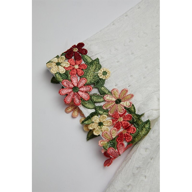 Women's White Elegant Lace Tops Eyelet Blouse Floral Embroidery V-Neck Half Sleeve White Summer Casual Outdoor Everyday Wear Romantic Petite Tops Summer Holiday Wear 5