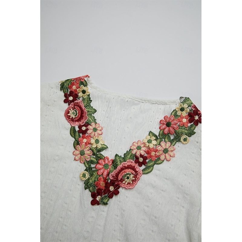 More information about Women's White Elegant Lace Tops Eyelet Blouse Floral Embroidery V-Neck Half Sleeve White Summer Casual Outdoor Everyday Wear Romantic Petite Tops Summer Holiday Wear