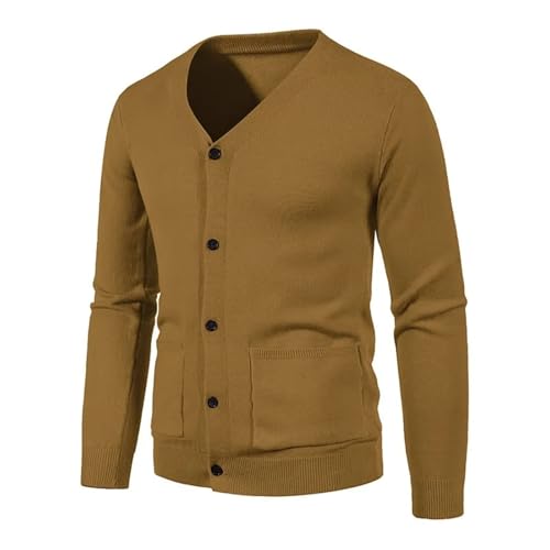 Mens Cardigan Sweaters Lightweight Long Sleeve V-Neck Button Knitted Outerwear with Pockets 1