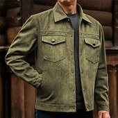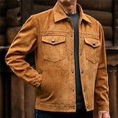 More information about Men's Trucker Jacket Faux Suede Jacket Cargo Jacket Vacation Daily Breathable Pocket Spring Fall Plain Fashion Classic Lapel Regular Black Khaki Army Green Jacket