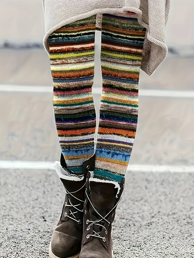 More information about Women's Leggings Vacation Vintage Ethnic Style Full Length High Waist Graphic Striped 3D Print Quick Dry Breathability Soft Stretchy Outdoor Home Causal Yellow Blue Fall Skinny