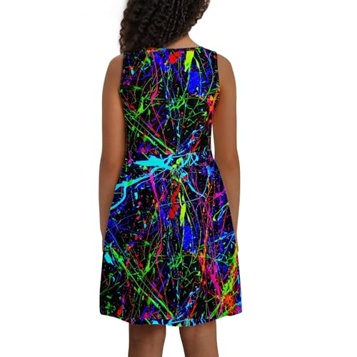 Little Girls Sleeveless Dress with Pockets Marble and Smoke Style Dresses Casual Party Sundress for 2-14T 6
