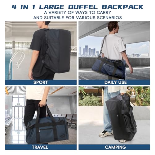 HOT ! Duffle Backpack Heavy Duty Gym Bag for Men, 50L Convertible Travel Duffel Water Resistant Large Hand Bag for Sport Weekend, Black