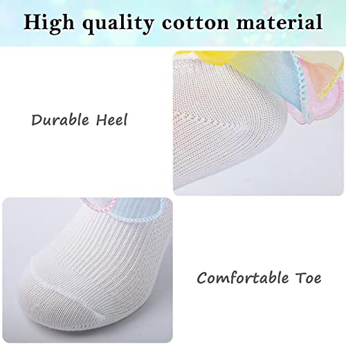 • 【Rainbow Socks】:Rainbow and multi colors design,stylish and eye-catching,make your child the most unique one;Cute princess style socks with bigger and fuller double lace ruffles,the puffy trim blooms like a flower on the baby's ankle,bring a special sweet feeling,make toddler girls look more adorable.