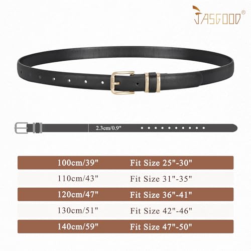 • Adjustable Fit - The gold buckle women's leather belt strap width is 0.9inch(2.3cm). The ladies leather belts have 5 size. Fit Size S:(25"-30"), M:(31"-35"), L:(36"-41"), XL:(42"-46"), XXL:(47"-50").