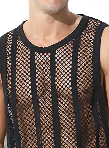 MIZOK Men's Fishnet Mesh Tank Tops Sexy See Through Workout Vest Sleeveless Sheer Muscle Shirts 4