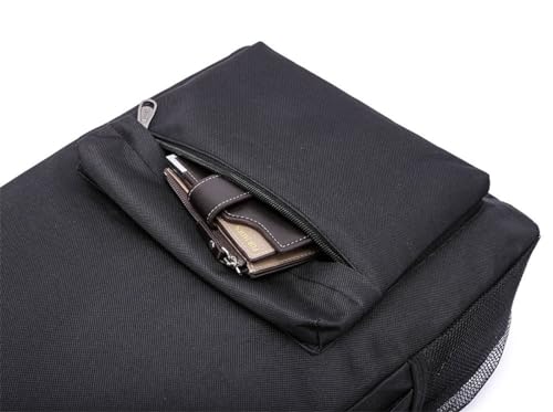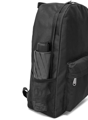 • External Pockets: 1 main pocket, 1 front pocket, 2 side pockets can fit water bottle and umbrella. Internal Pockets: 2 open pockets, can fits up to 14 inch laptop.