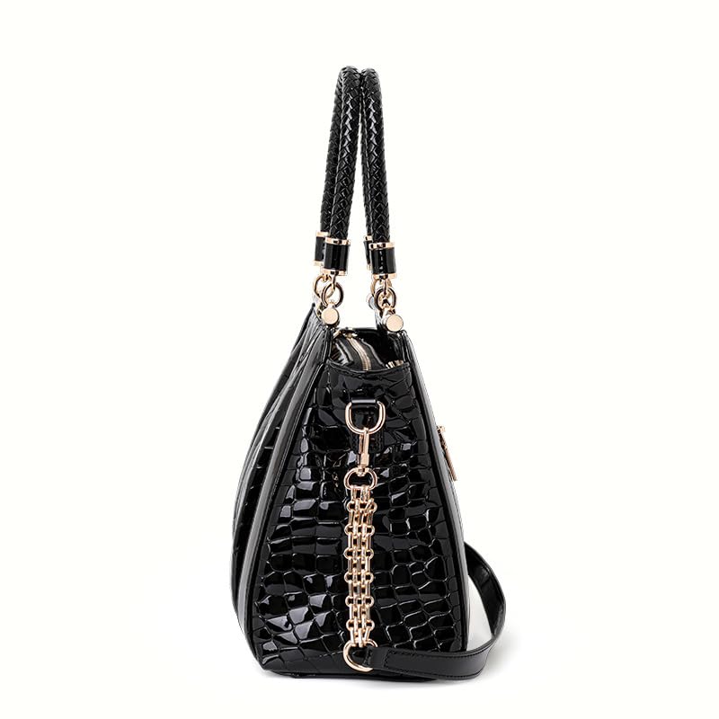 • 1. Premium Crocodile - Pattern Design This handbag stands out with its glossy crocodile - pattern exterior. The sleek black finish, paired with gold - tone accents like the “Aidraoni” logo and zipper hardware, creates a luxurious look. It’s not just a bag—it’s a fashion statement that instantly elevates any outfit, whether you’re dressing up for a night out or keeping it casual for work. The unique texture adds depth and visual interest, ensuring you’ll turn heads wherever you go.