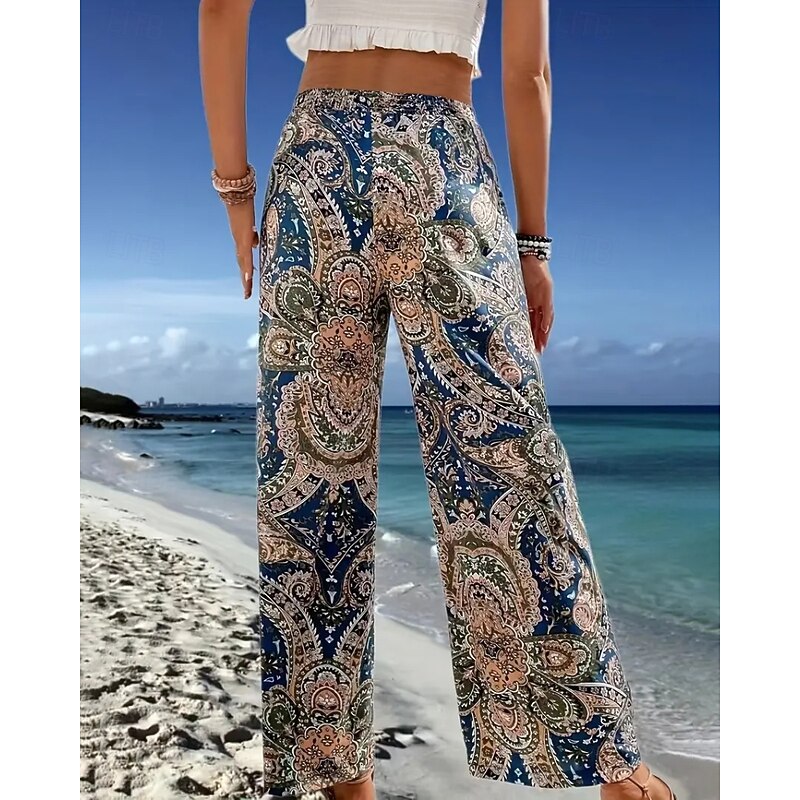 HOT ! Women's Slacks Pants Trousers Fashion Boho Full Length Natural Flower Elastic Waist Printing Comfy Outdoor Comfortable Vacation Going out Magenta Apricot Navy Blue Summer Regular Fit