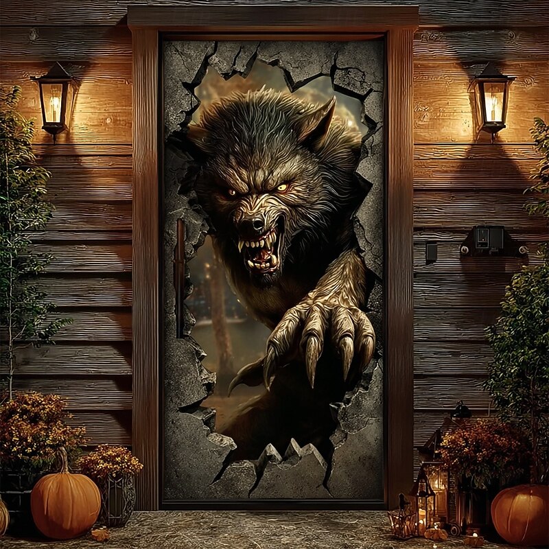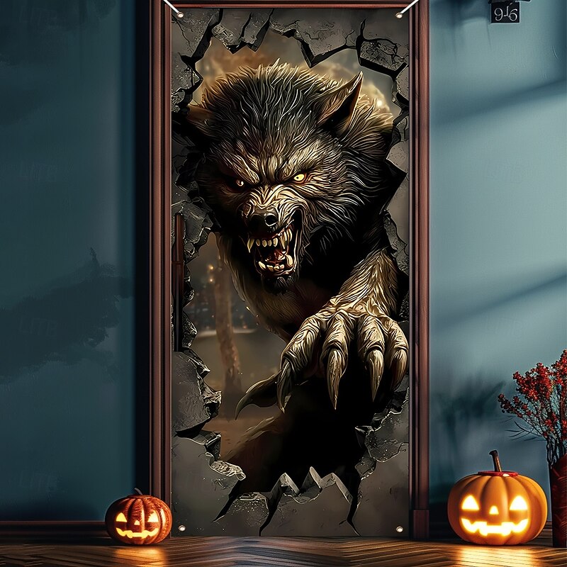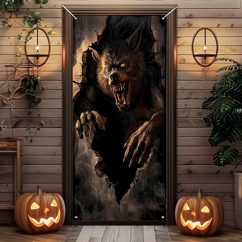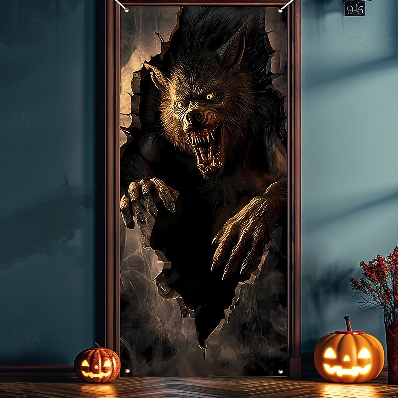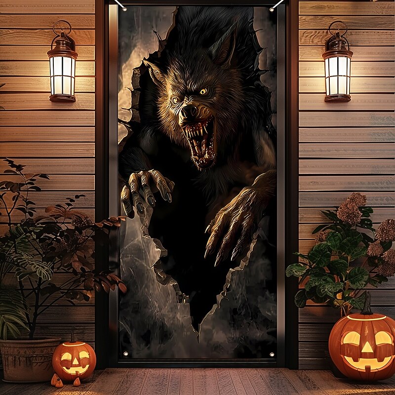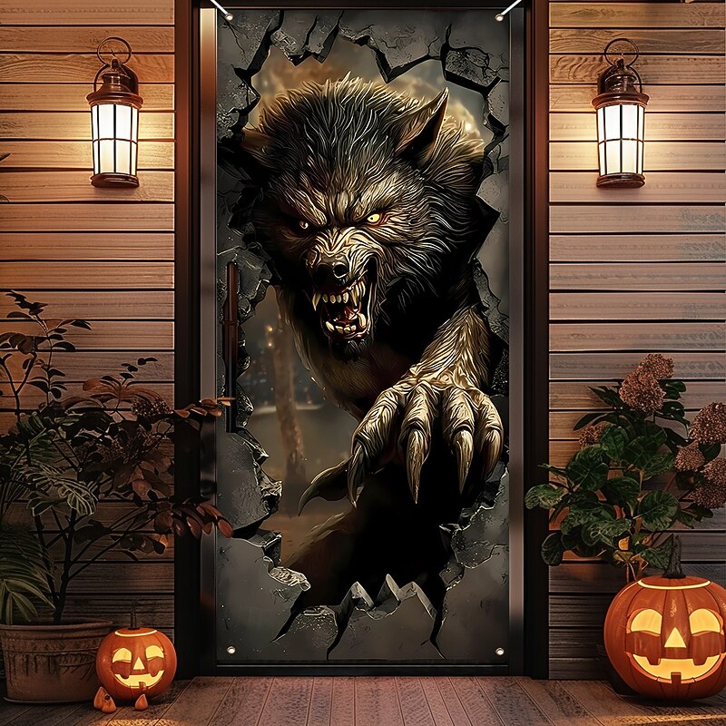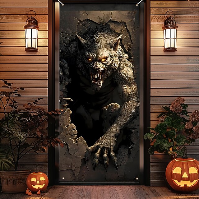 $15.99 - Halloween Door Cover Outdoor Banners Broken Effect Werewolf 3D Dark Punk Gothic Style Party Outdoor Shooting Backgrounds Front Door Wall Porch Decorations Wall Door Background 2025. Shop for cheap Halloween Door Covers online? Buy at lightinthebox.com on sale today!