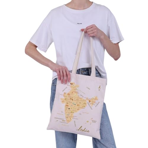 VAMSII India Souvenir Gift India Travel Map Tote Bag India Lover Gift East Of India Landmarks Themed Travel Bag 7