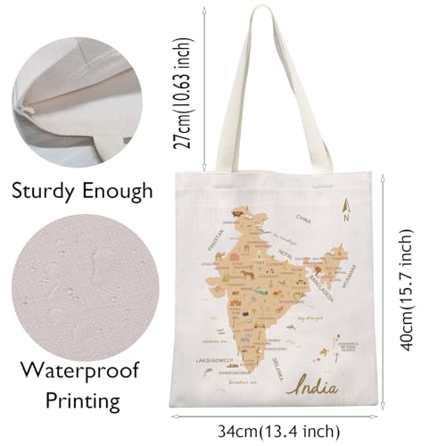 VAMSII India Souvenir Gift India Travel Map Tote Bag India Lover Gift East Of India Landmarks Themed Travel Bag 1