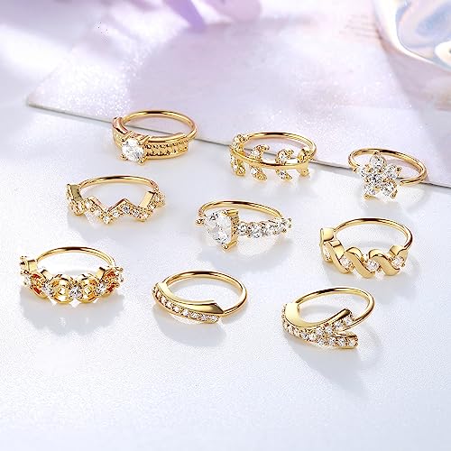 • Nose Ring Hoop:You Can Get 9 pcs 20G Nose Ring In One Order With Different Style, Including Flower Nose Ring, Clear CZ Paved Line Ring Nose Ring, Leaf Nose Ring, etc; These Cute And Shine Piercing Can Wear On Your Nose Or Ear