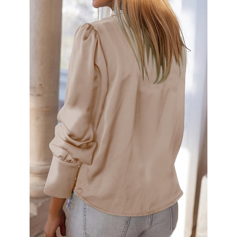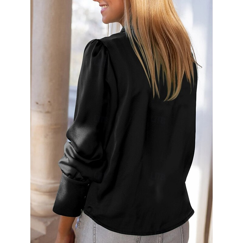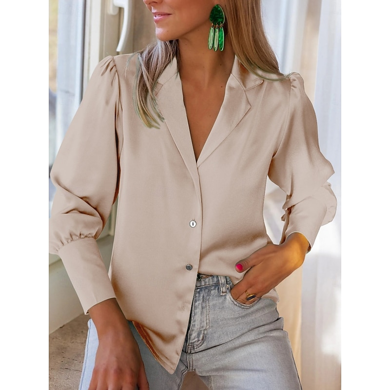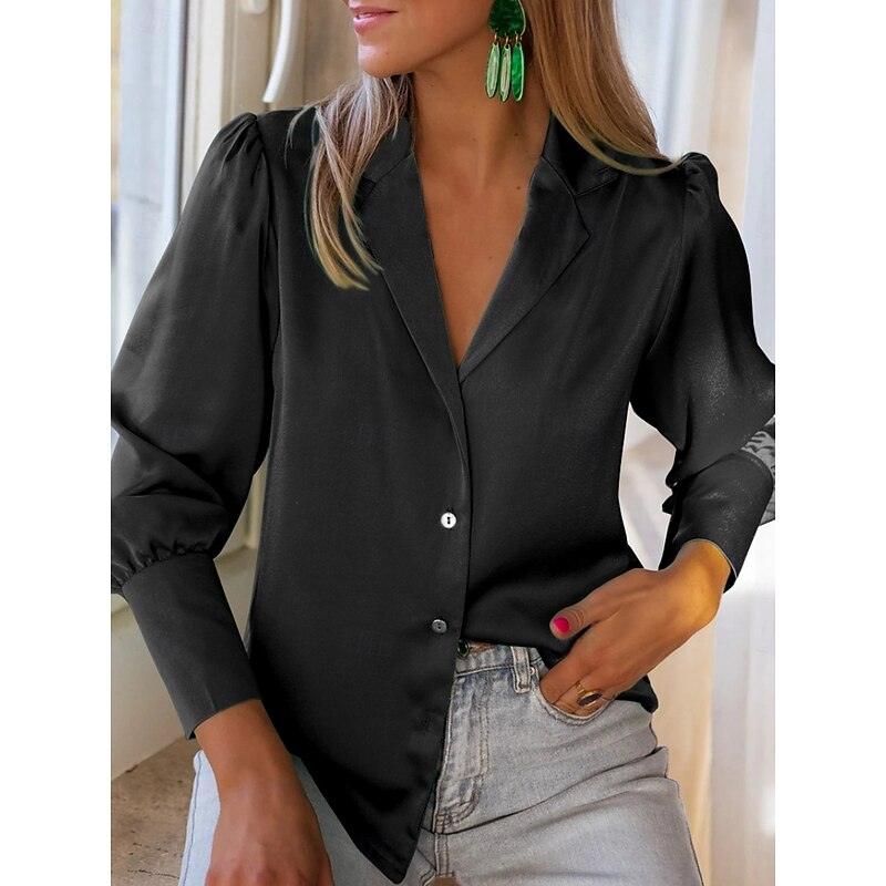 HOT ! Women's Shirt Blouse Solid Color Basic Casual Long Sleeve Shirt Collar Regular Tops Daily Buttons Black Blue Beige Fall Winter
