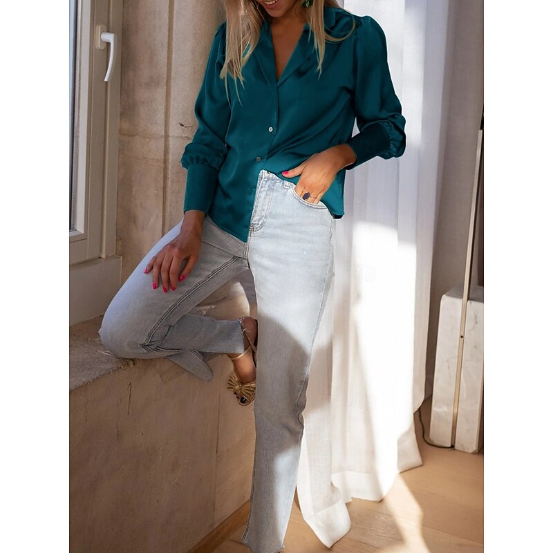 More information about Women's Shirt Blouse Solid Color Basic Casual Long Sleeve Shirt Collar Regular Tops Daily Buttons Black Blue Beige Fall Winter