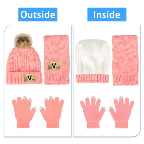 • 🎀【One Size Fits Most:】3-in-1kids winter warm set include hat👒, gloves🧤 and scarf🧣,The knit fabric and fleece lining has good stretch and therefore it can sometimes fit a wide size or age range for girls,Suitable for 8-14 years girls.
