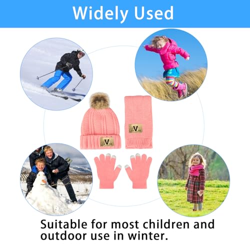 Kids Knit Hat/Scarf/Gloves Set,Winter Warm Set with Beanie and Long Scarf 4