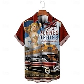 More information about Men's Car Pin Up Girl Shirt Summer Hawaiian Shirt Aloha Shirt Short Sleeves Shirt Turndown Fashion Designer Casual Outdoor Street Casual Wine Blue S M L