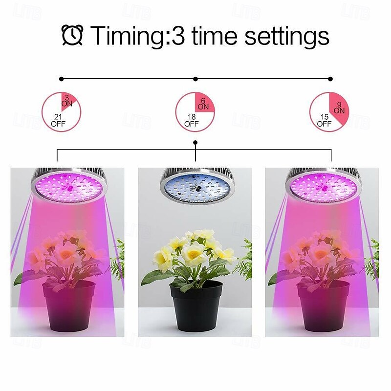 Full Light Plant Lamp with Remote Control Aluminum Alloy Plant Growth Light Bulb E27 50w High Power Red/Blue/Sun Color Adjustment Timing Function 85-265V  1PC 3