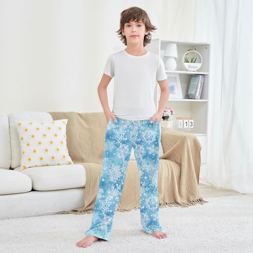 Winter Snowflake Boys Long Pants Soft Trousers Elastic Waist Kids Lounge Bottoms with Pockets S-XL 4